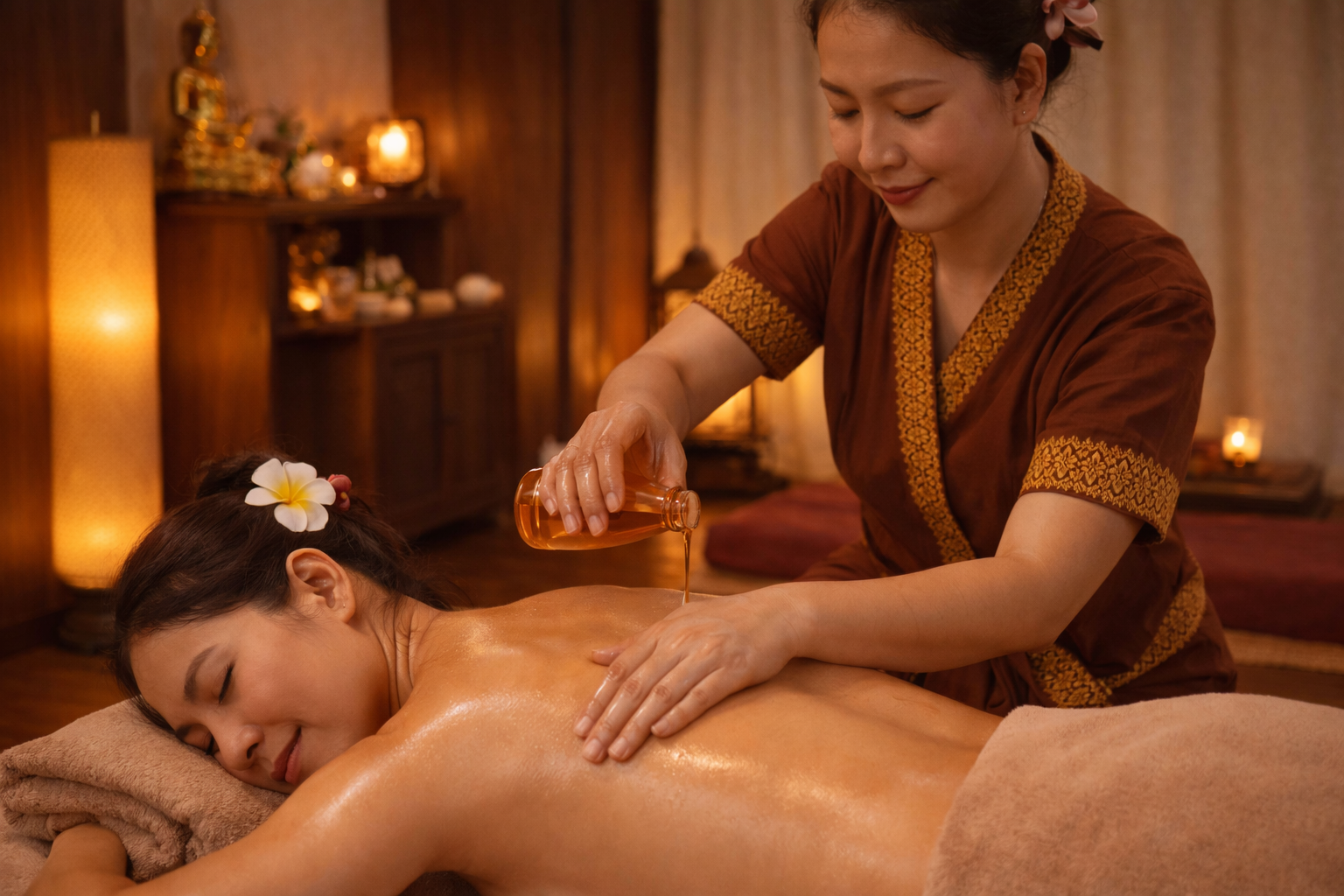 Massage relaxant aux huiles chaudes inspiré des traditions thaïlandaises. Parfait pour détendre les muscles, apaiser l’esprit et favoriser une sensation durable de bien-être.